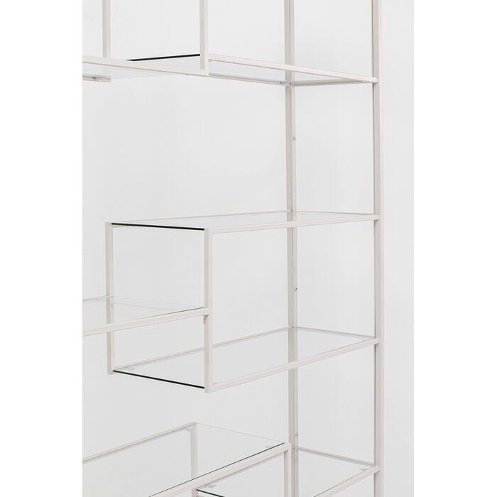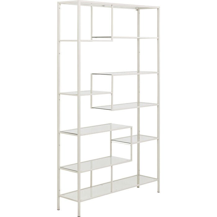 Cette étagère se démarque grâce à sa structure asymétrique qui attire l’oeil. Les plateaux en verre sont répartis sur neuf niveaux pour offrir un design décalé. Elle trouve sa place autant dans un intérieur minimaliste et élégant que dans une décoration de style industriel. Vous pouvez également vous en servir de séparation de pièce.