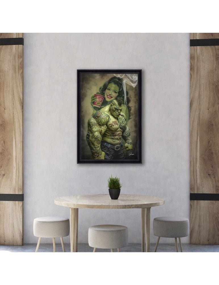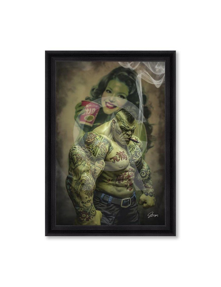 - Impression / Numérisation haute définition sur PVC souple contrecollée sur médium noir + vernis de protection sur l'illustration