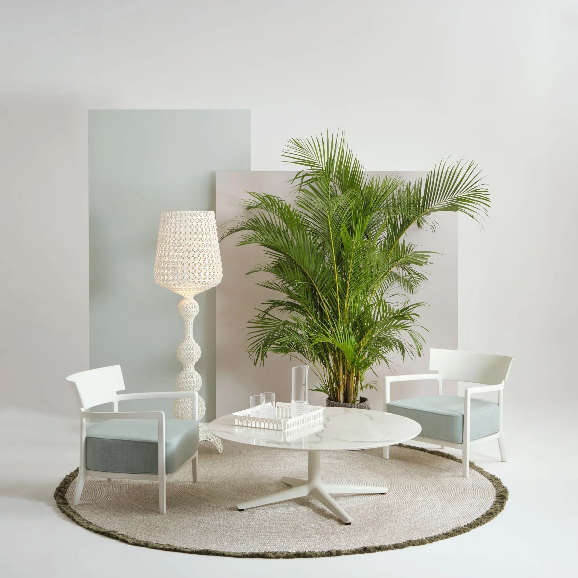 Le lampadaire Kabuki de Kartell, imaginé par le designer Ferruccio Laviani, est devenu une véritable icône du design contemporain. Grâce à sa structure ajourée inspirée de la dentelle, il diffuse une lumière élégante et crée une ambiance chaleureuse dans votre intérieur.