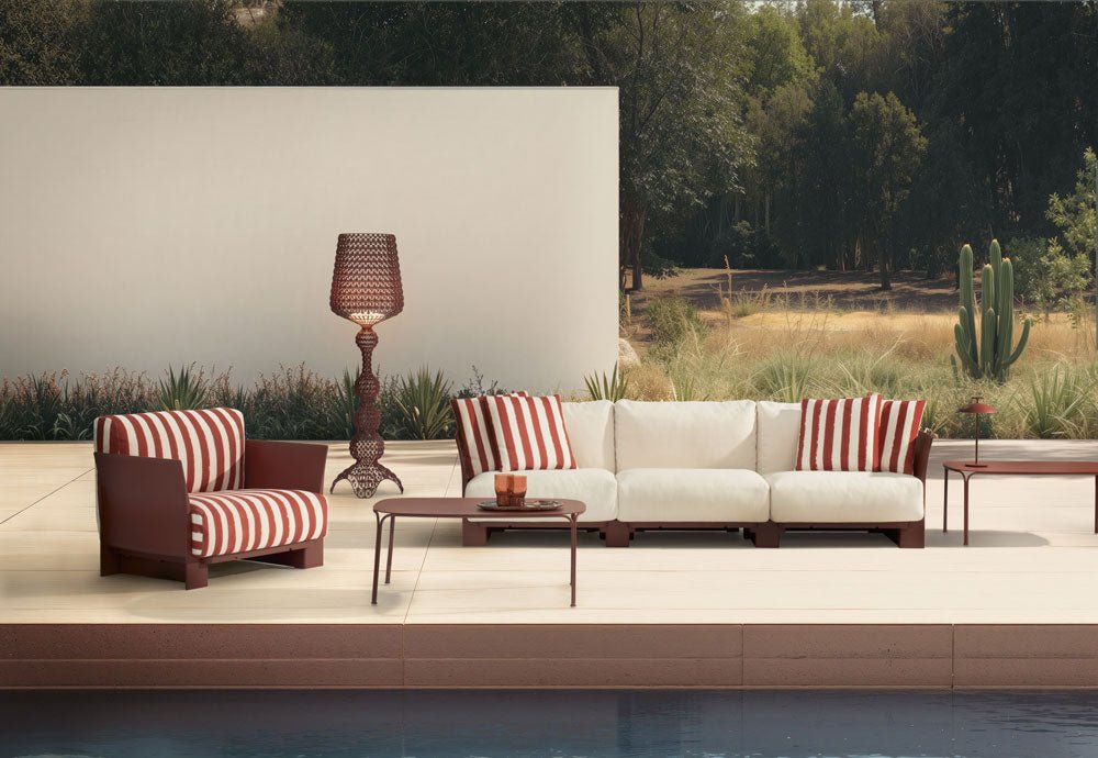 Le lampadaire Kabuki est une pièce emblématique du design italien contemporain. Sa structure ajourée crée des jeux de lumière uniques et transforme l’éclairage en véritable élément décoratif.