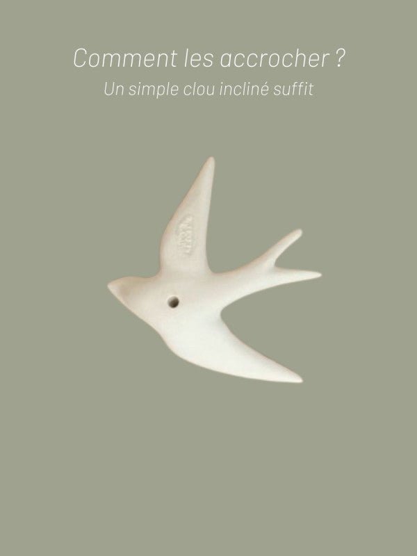 Notre hirondelle Volage peut se placer au mur avec un simple clou incliné, dans un jardin avec un pique, ou se poser sur un meuble.