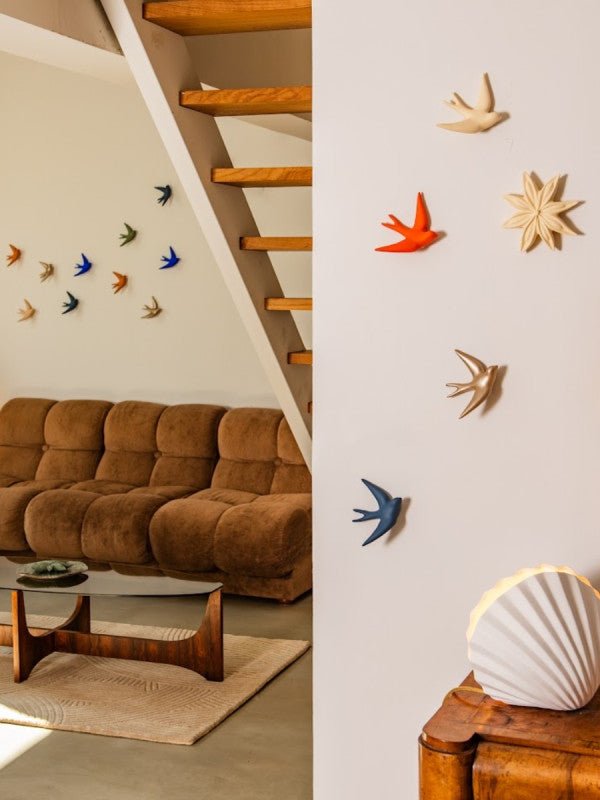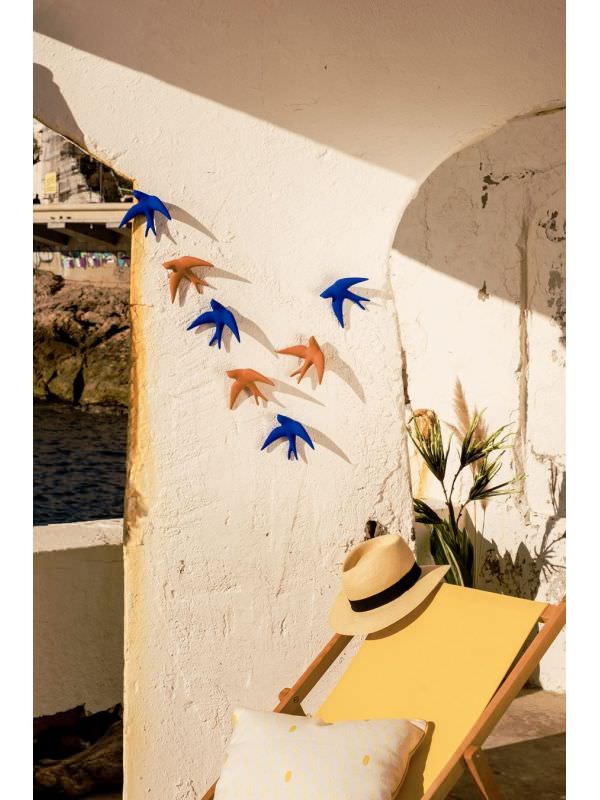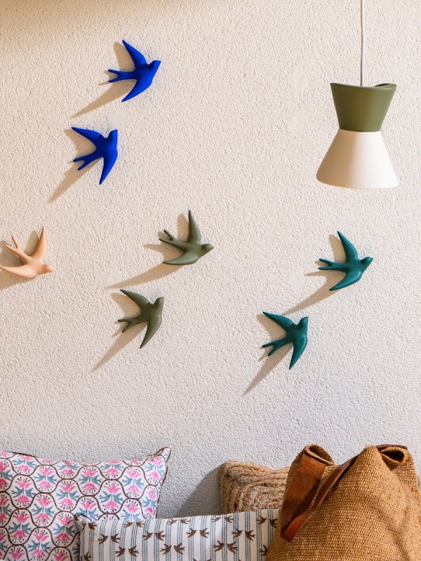 Décoration murale en céramique hirondelle, Volage, symbole de liberté et de pureté.