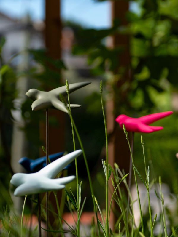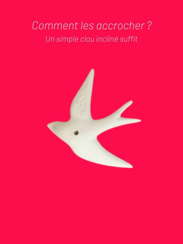 Notre hirondelle Volage peut se placer au mur avec un simple clou incliné, dans un jardin avec un pique, ou se poser sur un meuble.