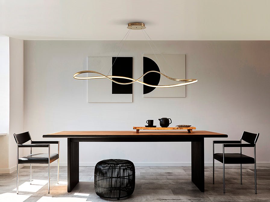 Lampe à lumière LED, DIMADO et changement de couleur CCT. Fabriquée en acier et aluminium, finition FEUILLE OR et détails en plaqué or brillant. Diffuseur en silicone opale. Réglable en hauteur. Eclairage LED 37W, 2800 lm, 2700-5000 K. Télécommande