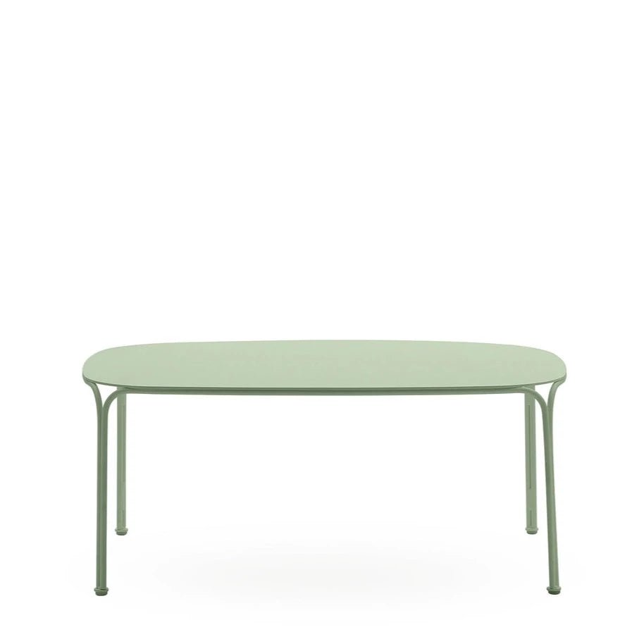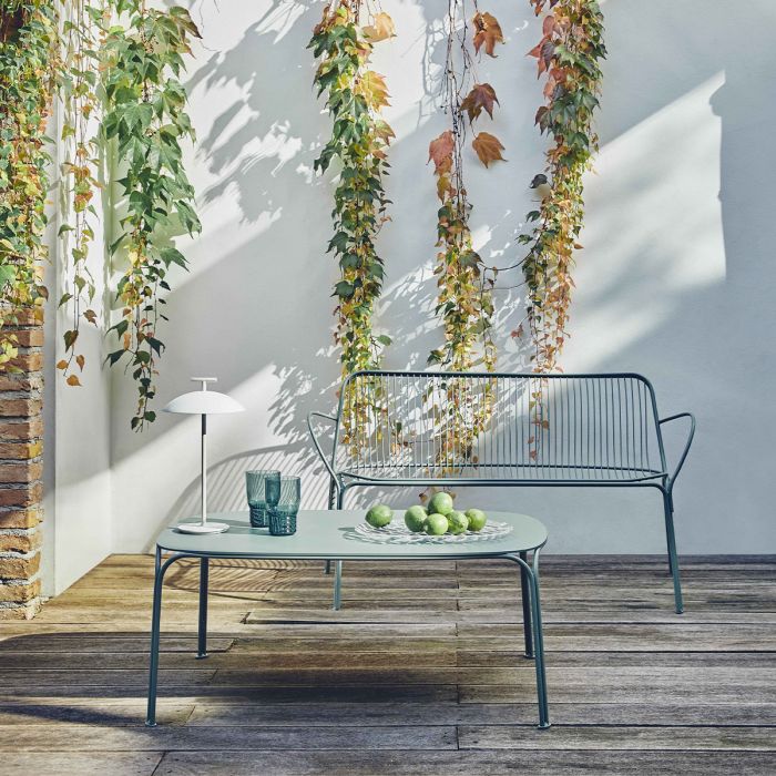 Fabriquée en acier zingué peint, la table Hiray est conçue pour résister aux conditions extérieures tout en conservant une grande finesse esthétique. Elle s’intègre parfaitement dans un salon de jardin, sur une terrasse ou comme table d’appoint dans un intérieur moderne.