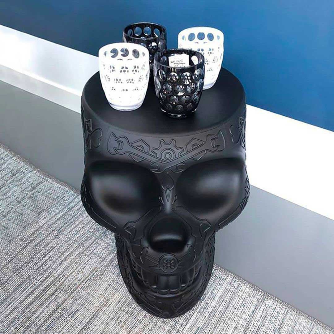 Mexico, conçu par Studio Job, est un objet design en forme de crâne avec un motif graphique sur la surface, fonctionnant à la fois comme un tabouret ou une table d'appoint. Rappelant les crânes peints traditionnels du pays homonyme, le Mexique est un rappel fantaisiste de la cyclicité de notre présence sur Terre, pour exorciser la mort et célébrer la vie. Parfait pour les salons, les salles à manger et les espaces extérieurs.