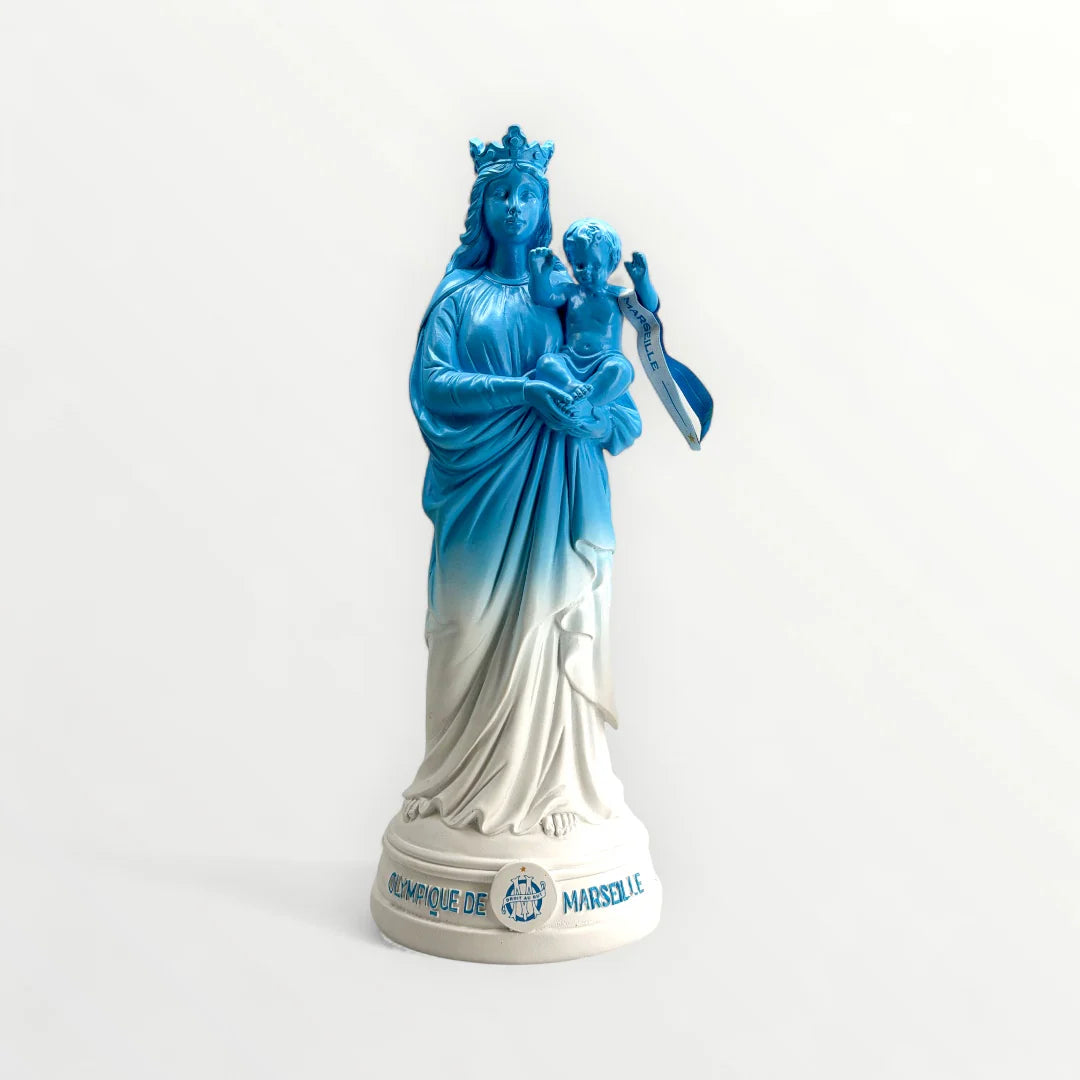 La version majestueuse de la Bonne-Mère pour les supporters qui veulent voir les choses en grand. Un symbole fort de Marseille, revisité aux couleurs de l’Olympique de Marseille.