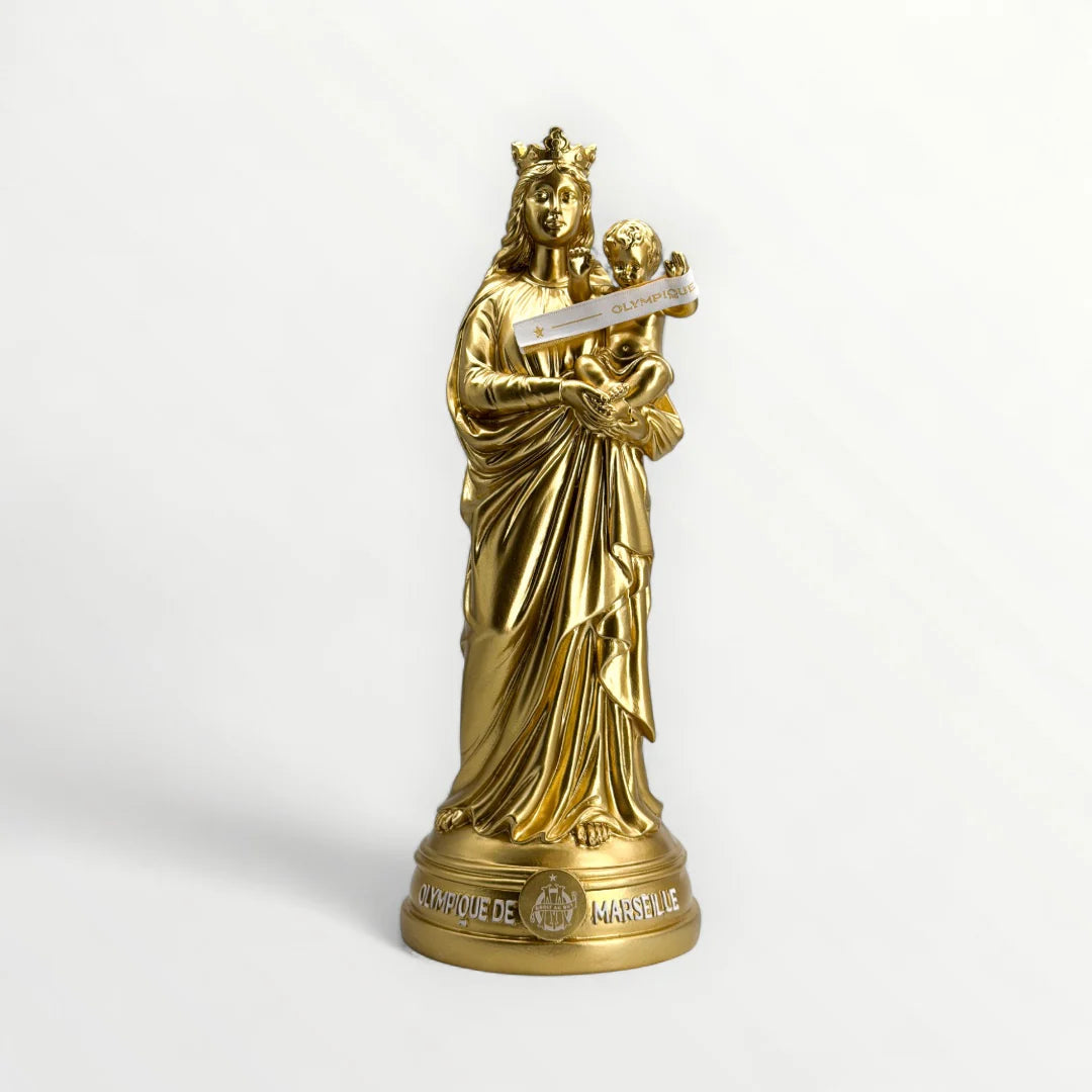 La version majestueuse de la Bonne-Mère pour les supporters qui veulent voir les choses en grand. Un symbole fort de Marseille, revisité aux couleurs de l’Olympique de Marseille.